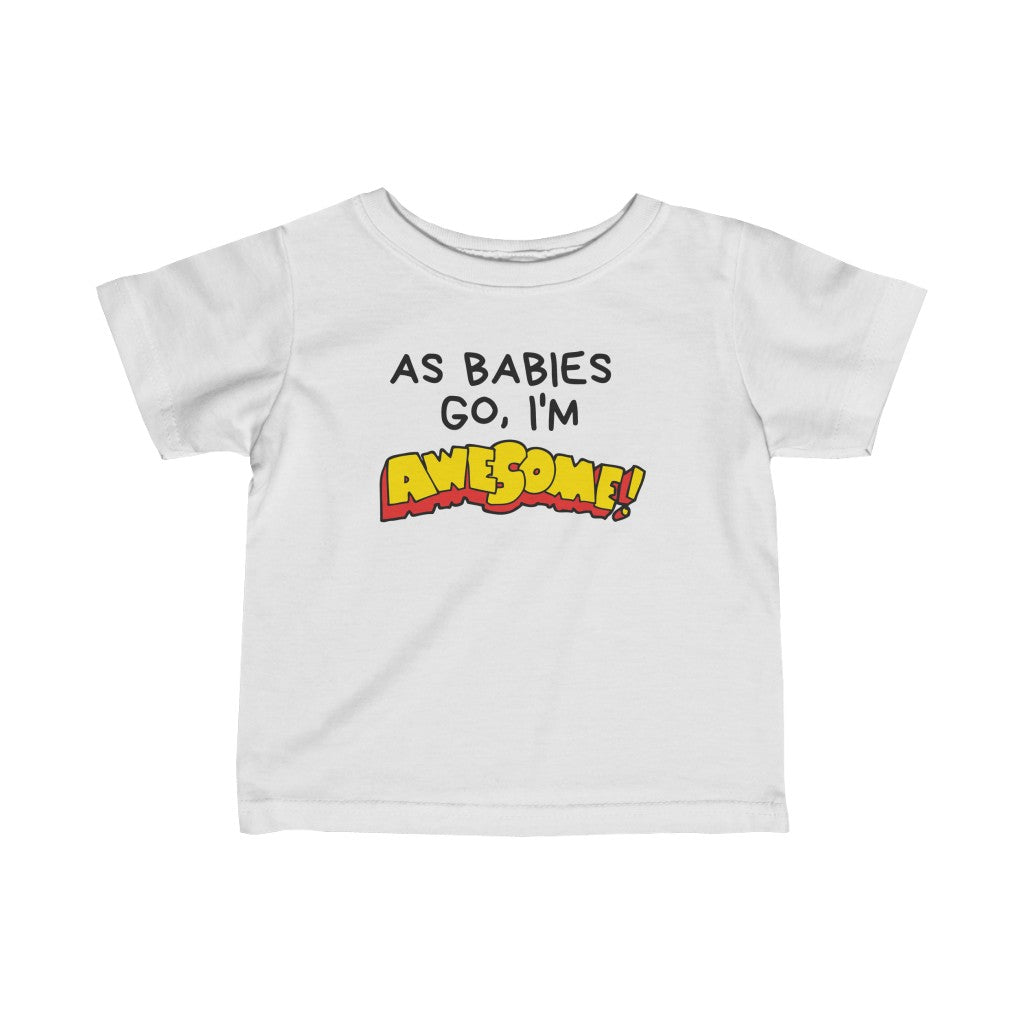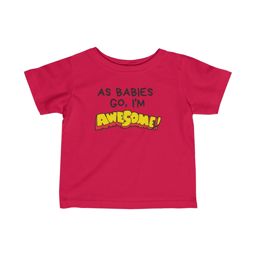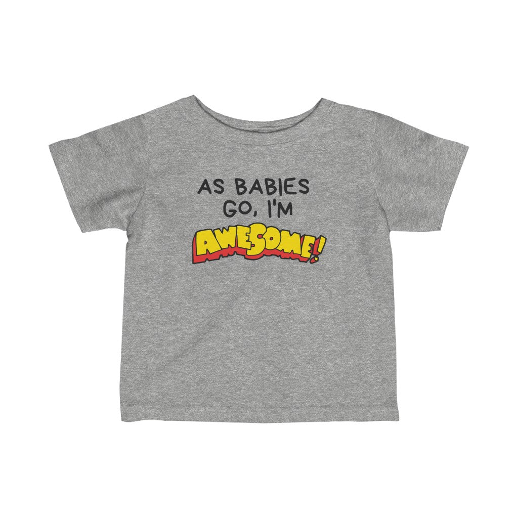 The infant fine jersey tee is a balance between comfort and durability. This fabric is specially spun to be strong and smooth. Solid colors are 100% cotton. Other colors feature polyester. There are side seams. The collar has ribbed knitting for improved durability. The shoulders are tapped with twill for improved fitting.