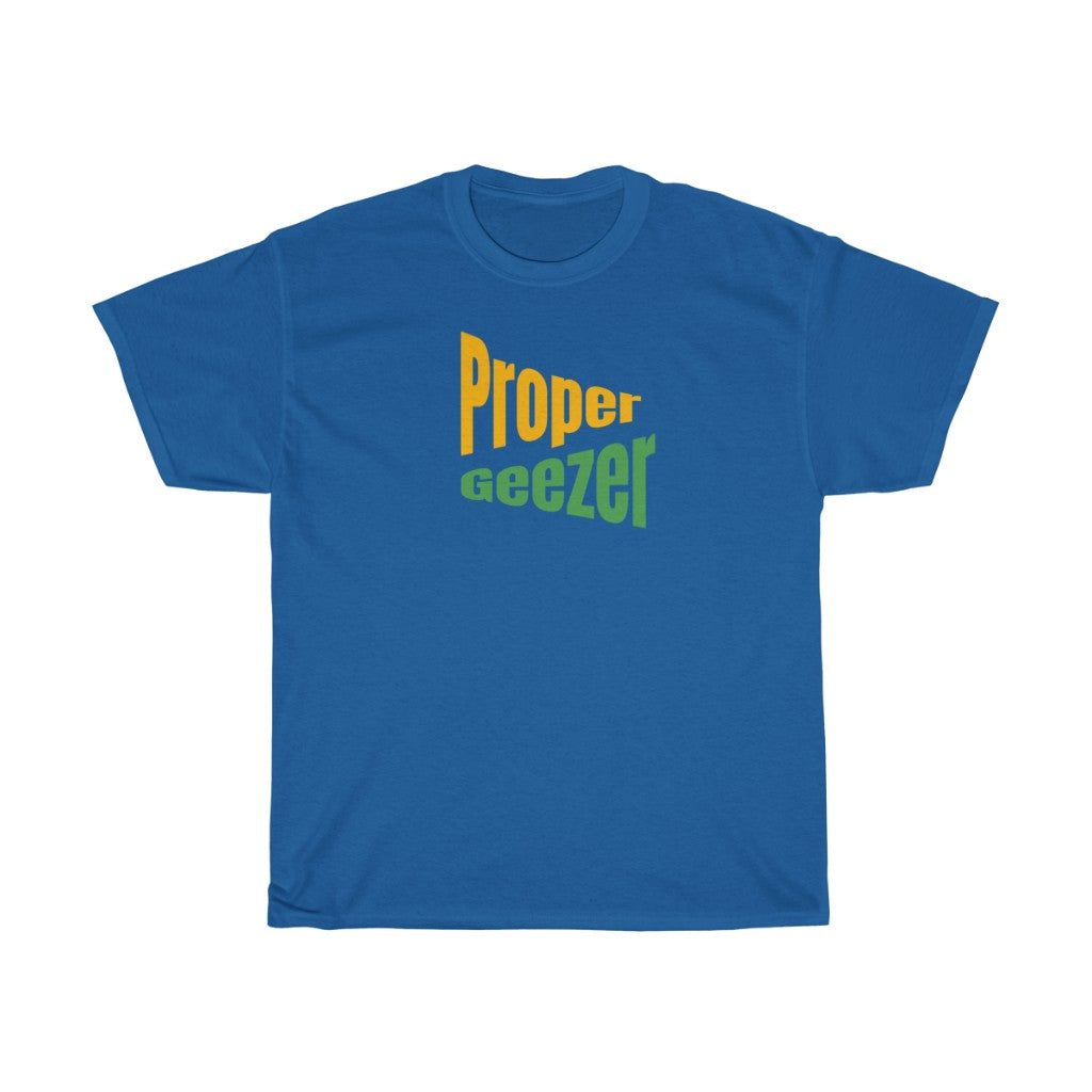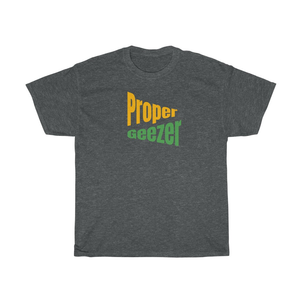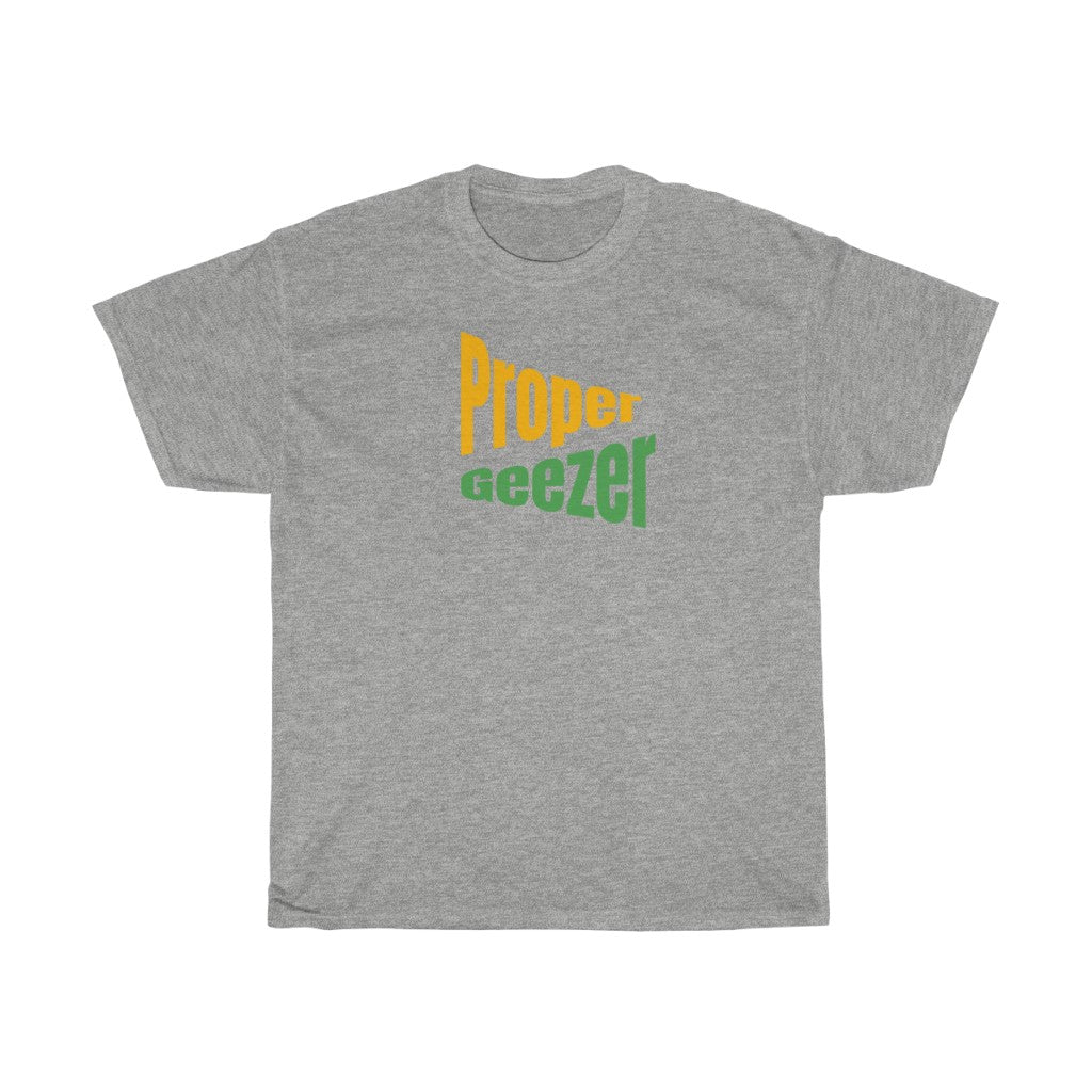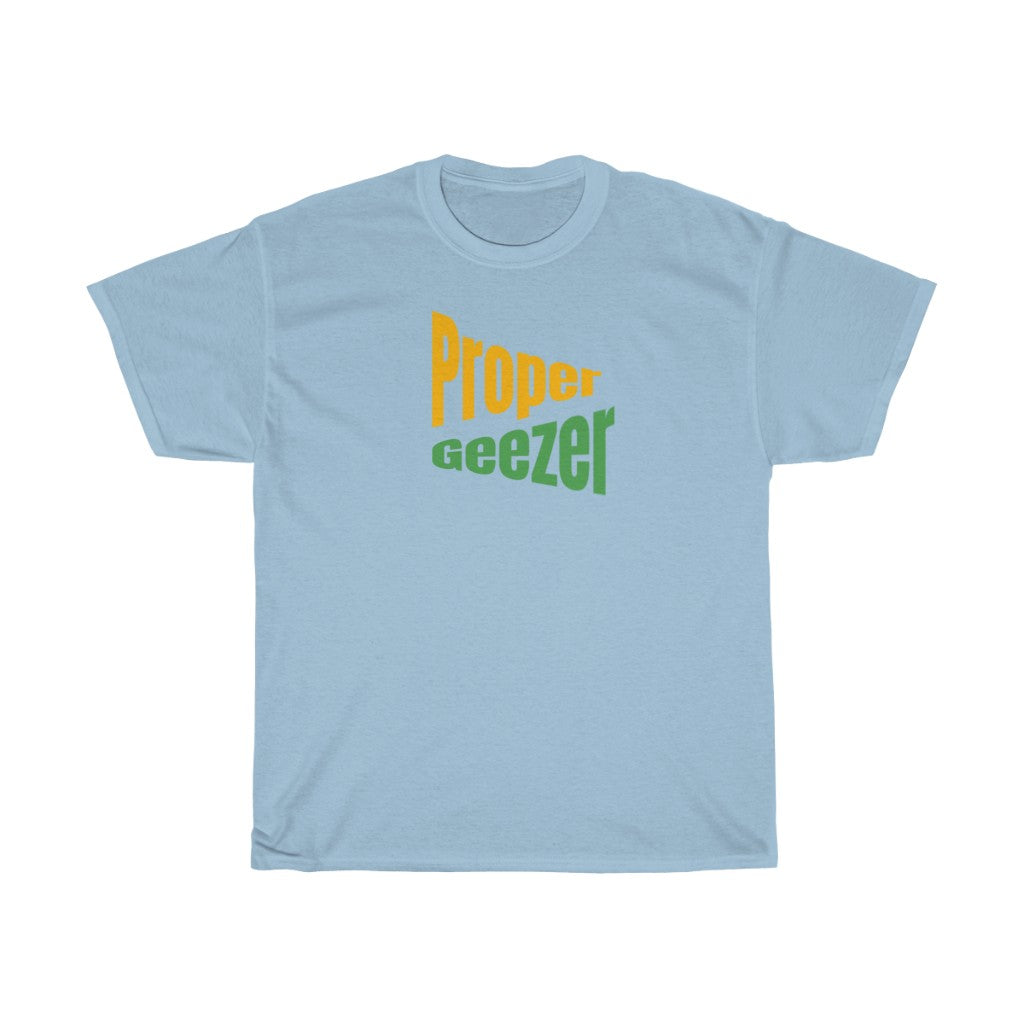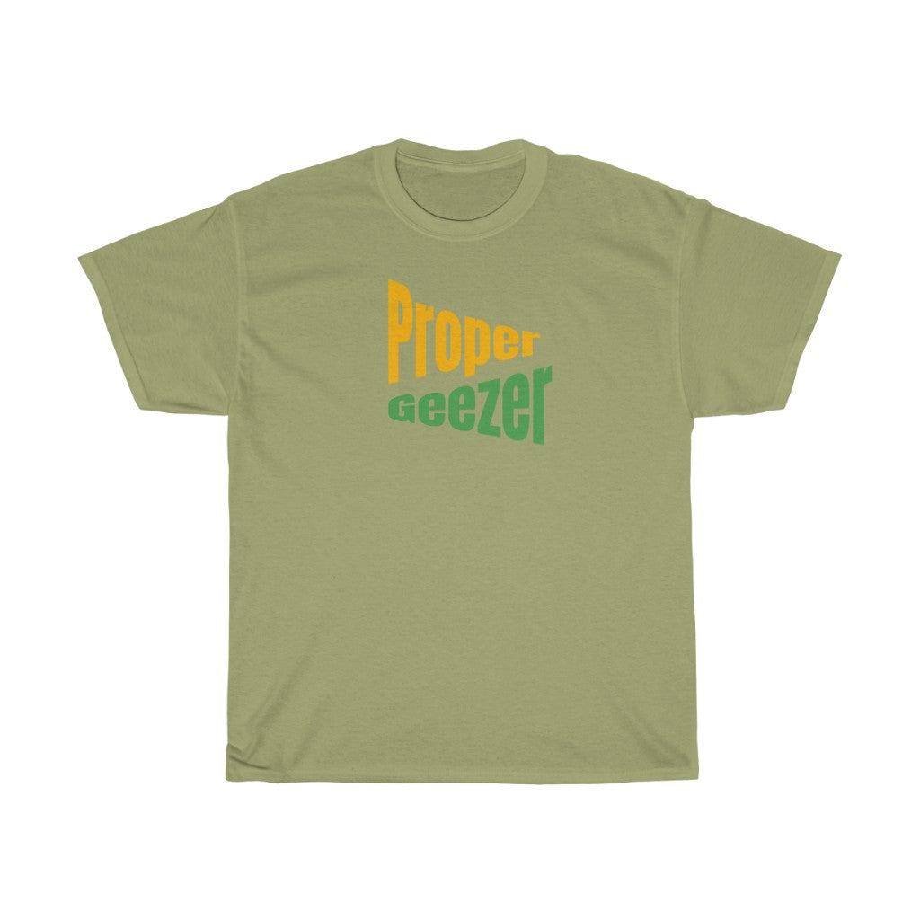 Unisex Heavy Cotton Tee 'PROPER GEEZER' (Green & Gold) Design Motif